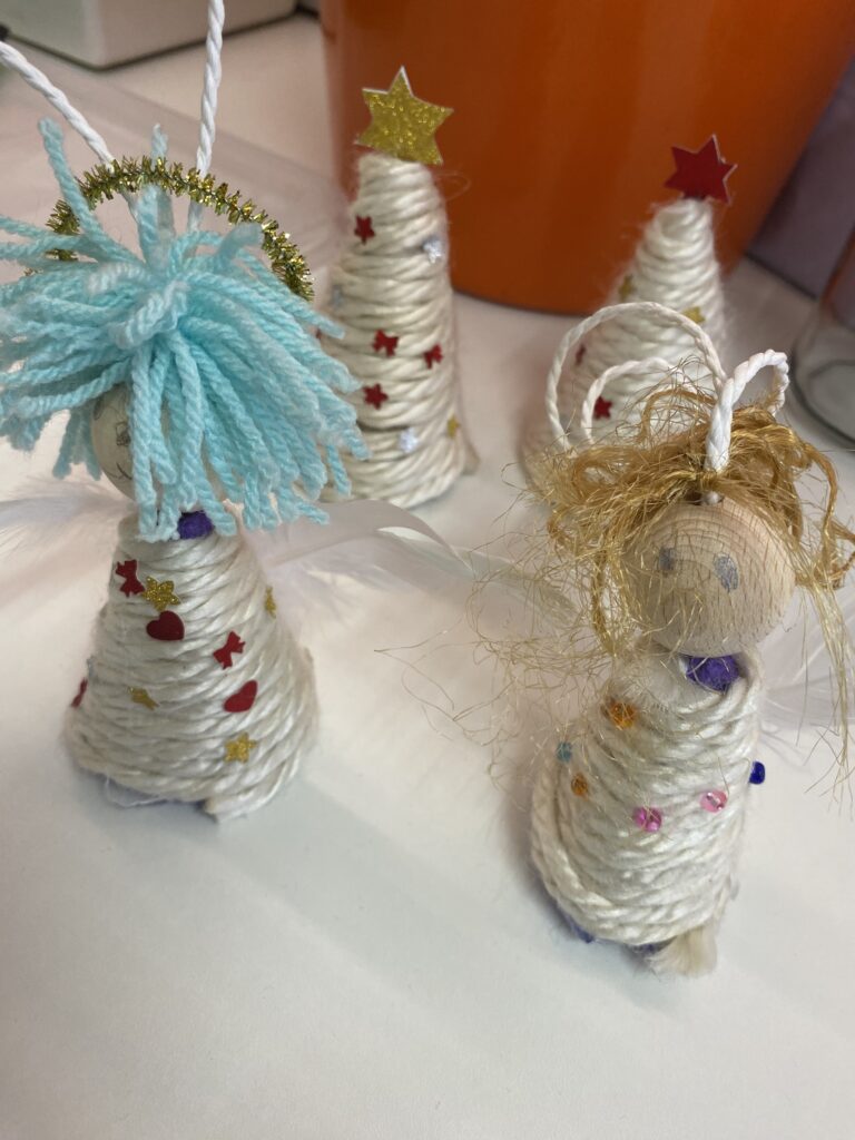 Aus Verpackungsresten und Wollresten entstehen Dekorationen, die einen festen Platz im Klassenraum, zu Hause oder am Weihnachtsbaum finden. So wird Nachhaltigkeit greifbar, sinnlich und alltagsnah vermittelt.
