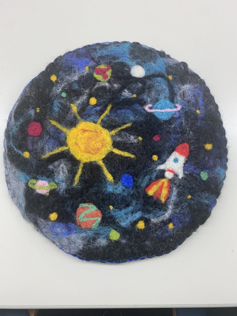 Zu Beginn erlernten die Studierenden grundlegende textile Techniken, darunter das Nass- und Trockenfilzen mit Schafwolle sowie den bewussten Umgang mit gebrauchten Textilien. Erst danach entwickelten sie eigene Projektideen, in denen sie das Gelernte selbstständig weiterführten und vertieften.