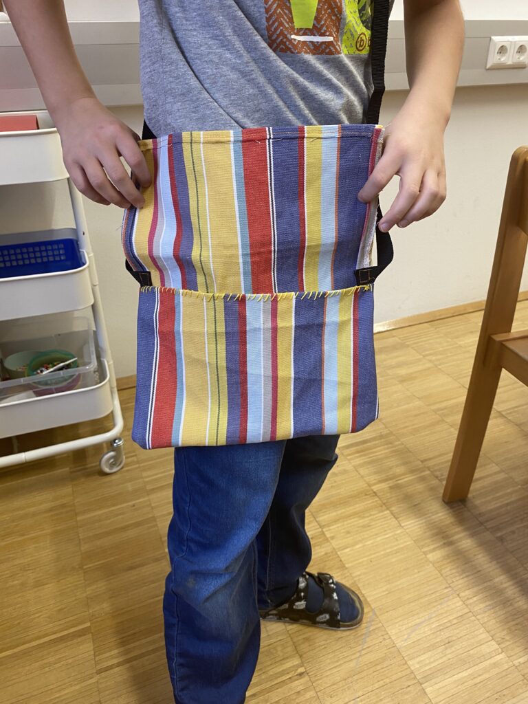 Beim Nähen zeigte sich, wie ernsthaft und konzentriert die Kinder arbeiteten. Sie nähten langsam, überprüften Nähte, korrigierten Fehler und halfen einander. So entstanden echte Unikate – jede Tasche anders, jede mit einer eigenen Geschichte.